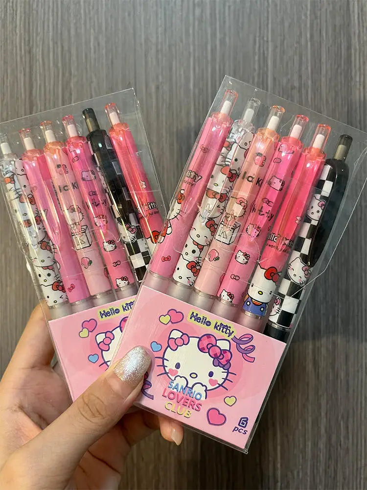Brighten your writing experience with this adorable set of 6 Sanrio gel pens featuring Hello Kitty, Kuromi, and more — a must-have for any Sanrio fan or stationery enthusiast!